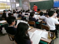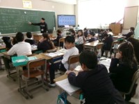 元日本代表選手のホッケーコーチ2人を招いて、出前授業を行いました。ホッケーの経験したひとはおらず、みんな初心者ながら、コーチに教えてもらいパス練習やゲームをしました。やってみると難しくもあり、楽しくもあり、私も白熱していました。