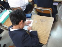 「もみじ」の合唱をしました。きれいな声を心がけて歌っています。