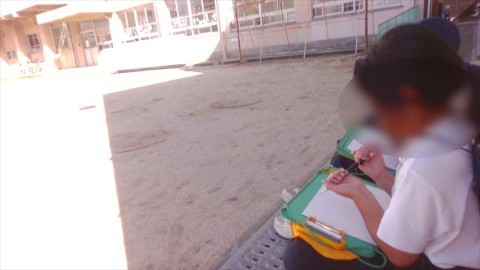 学校の絵を描いています。上手にかけたかな?