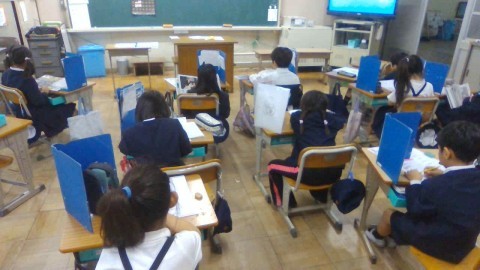 かけ算(2~5の段)のテストをしました。明日から6の段の授業が始まります。頑張りましょう。