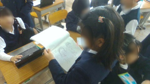 自主学習の見せ合いをしています。真似したいもの,すごいなと思ったものを見て,次の学習の参考にしてほしいと思います。