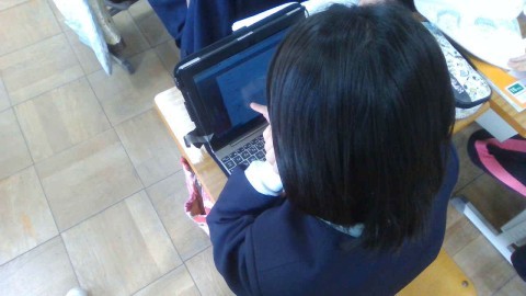 見せ終わった後は,パソコンを使って,よかったものに投票しています。今回は誰がグランプリかな?