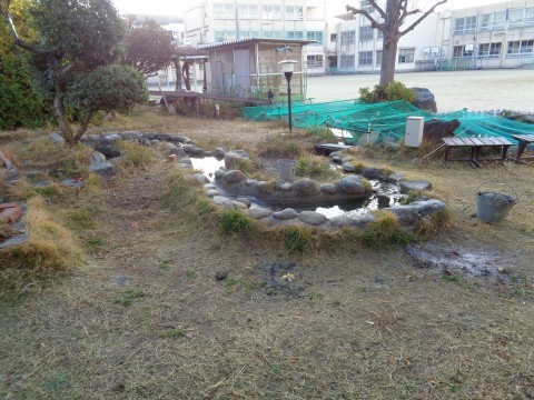昨日,5年生が校庭の錦綾川をきれいにしてくれました。