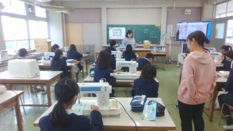 2組 家庭科 ミシンの練習をしました。