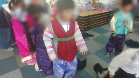 モンゴルの人々の文化について,李先生に授業をしてもらいました。ちょうど国語で「スーホの白い馬」を学習しているので,事前知識はありましたが,知らないことばかりで,みんな驚いていました。最後に,モンゴル・韓国・中国の民族の衣装を着させてもらいました。よく似合っていますね。