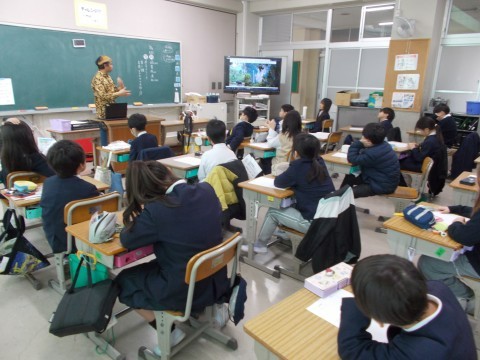 子どもたちはお話を聞きながら、「島がたくさんあるんだ。」「インドネシアの学校と日本の学校では違うところがあるな」などと反応していました。