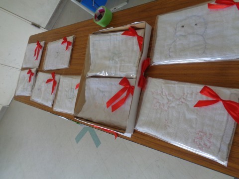 卒業の記念で,6年生がぞうきんにししゅうをして,プレゼントをしてくれました。