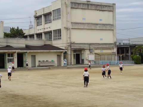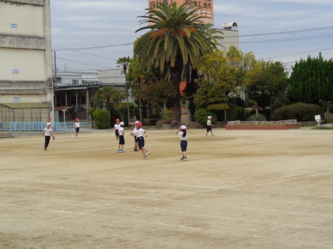 増え鬼をしました。鬼にタッチされないように,運動場をみんなで走り回っていました。