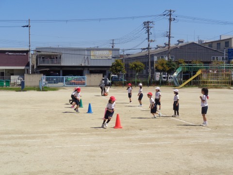 まっすぐ走ったり,コーンをぐるっと回ったりといろいろな走り方で楽しく活動していました。