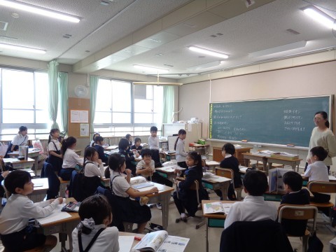 堺市内で人が集まるところについて考えました。「イオンモールにたくさん人が集まっているよ」「〇〇があるよ」と知っていることを出し合っていました。