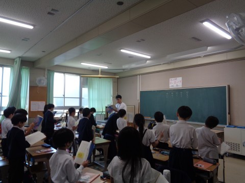 「白いぼうし」を音読していました。しっかり声に出して,先生のあとにリズムよく続いていました。