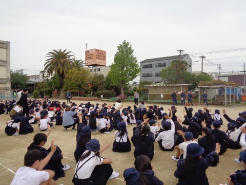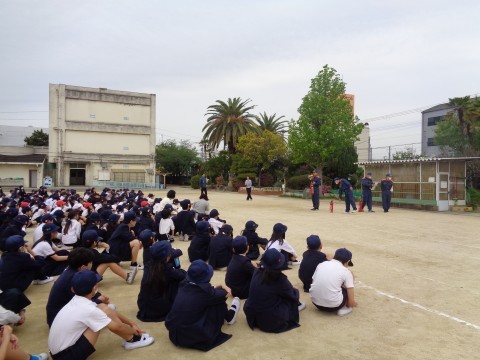 新しい学年になって初めての避難訓練を実施しました。今日の訓練は,地震発生の後,火事が起こってしまったという想定でした。訓練の様子を見ていると,高学年はさすがに落ち着いて行動し,運動場に素早く静かに避難していました。