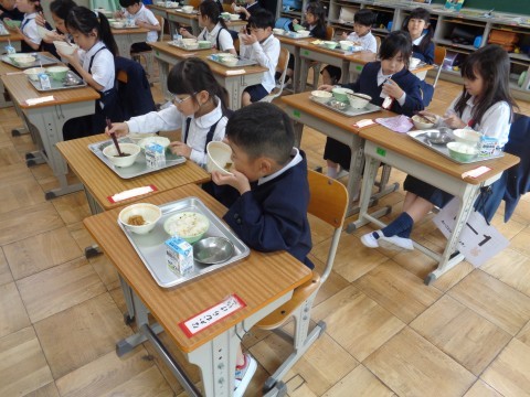 今日も「おいしい!」と言って,パクパク給食をいただきました。お箸も上手に使えています。