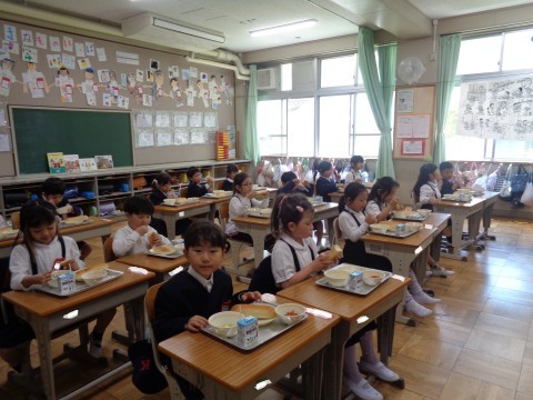 「今日はハンバーグだ!」と喜んでいました。配膳にも少しずつ慣れて,上手にできています。