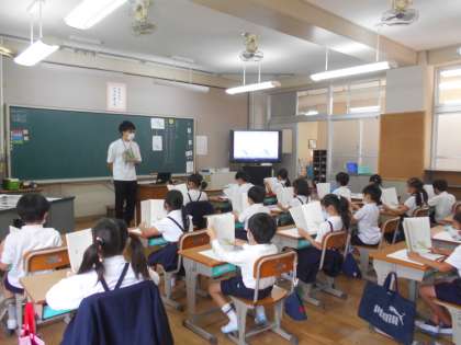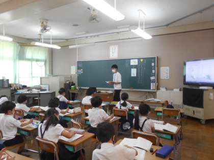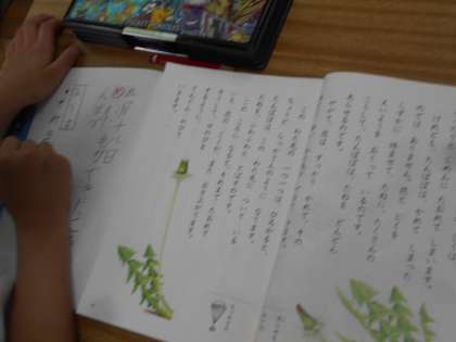 国語の授業です。「わた毛ができたころのたんぽぽのちえ」について,考えています。