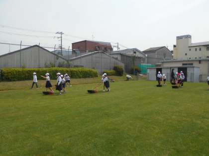 4年生は久しぶりの,2年生にとっては初めての芝生の日でしたが,自分たちの手で刈られていく芝生を見て,とても楽しそうに,そして満足した顔をしていていました。