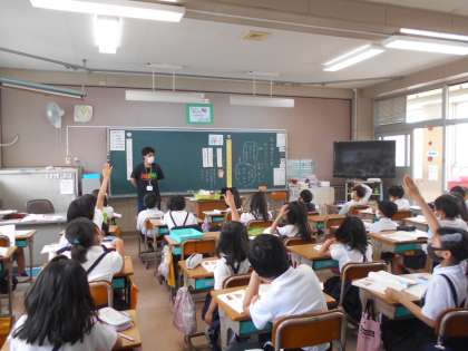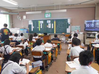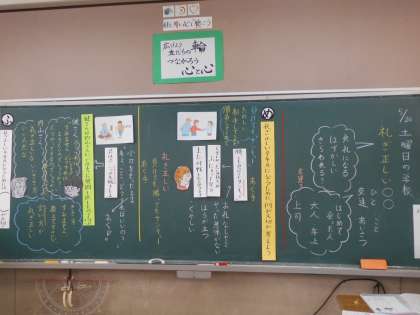道徳の授業です。「礼儀正しいふるまいとは」について考えています。