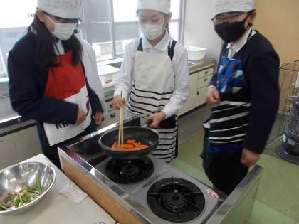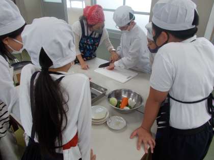 使い慣れない包丁に緊張しながらも,うまくいったときは,うれしそうでした。