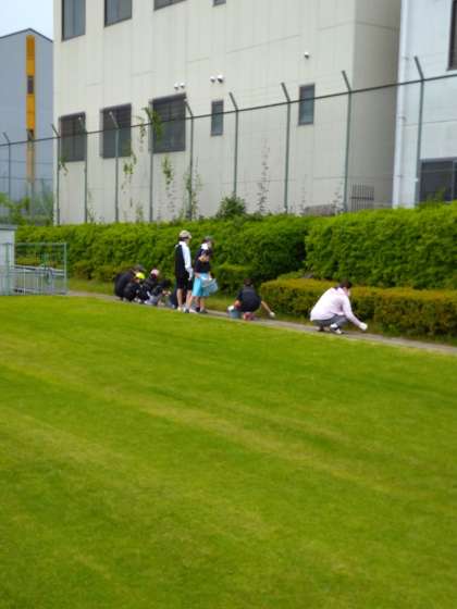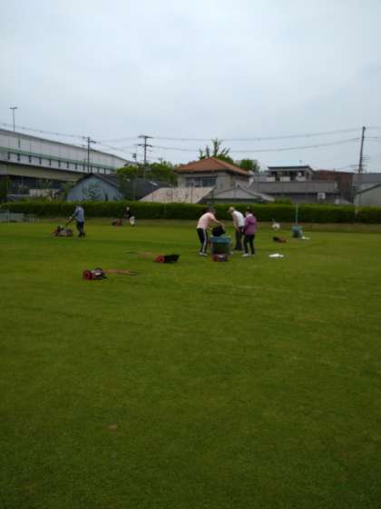 芝生クラブのみなさんを中心に、おやじの会やポートボールチームのみなさんなど地域の方々が、芝生を整備してくださいました。