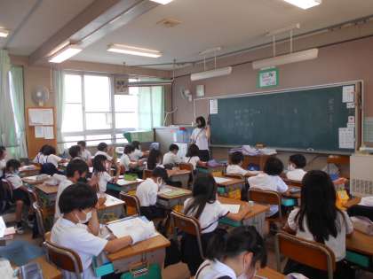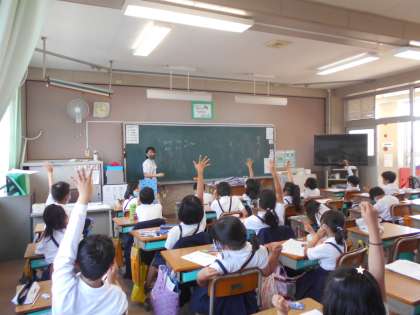 算数の授業です。「ぼうグラフ」のプリントの答え合わせをしています。