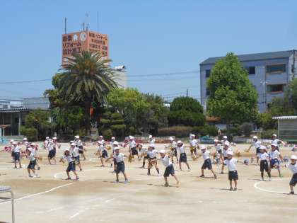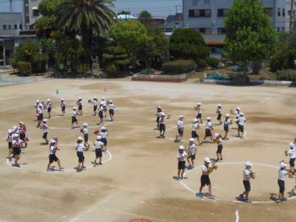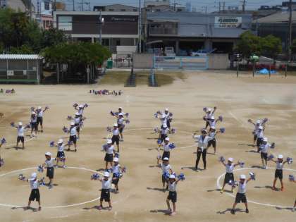 「団体演技」の練習です。腕にかざりをつけて演技します。