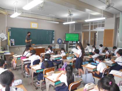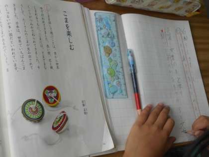 国語の授業です。「こまを楽しむ」のまとめの学習をしています。