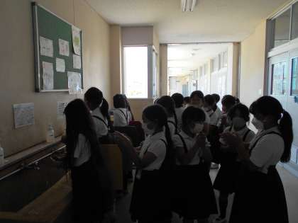 保健委員会が主催で,手洗いチェック体験活動を休み時間に実施しました。