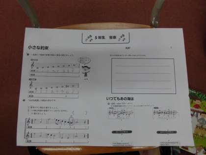 音楽の授業です。リコーダー「小さな約束」のテストをしました。