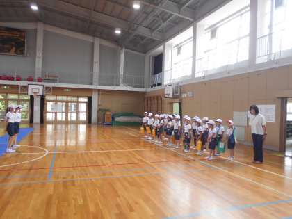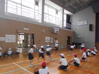 スポーツテストの「上体起こし」と「反復横とび」に取り組んでいます。計測の補助と記録を5年生がしてくれました。
