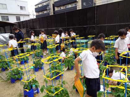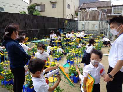 生活の授業です。あさがおの観察をしました。