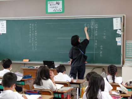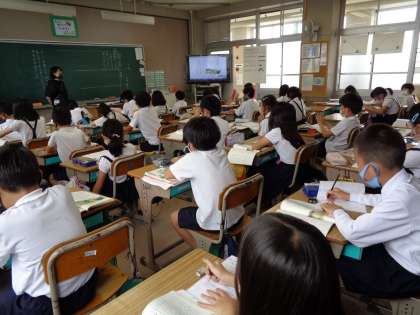国語の授業です。「一つの花」の物語を通して,登場人物の行動や会話,気持ちについて考えました。