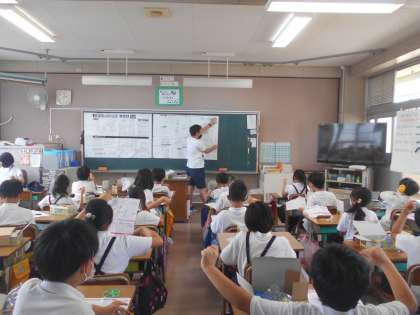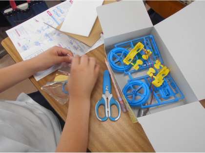理科の授業です。「電気のはたらき」で使う,実験道具をつくっています。