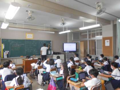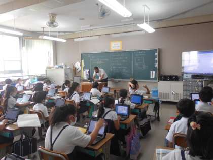 社会の授業です。「わたしたちのまち堺」のことを,タブレットで調べています。