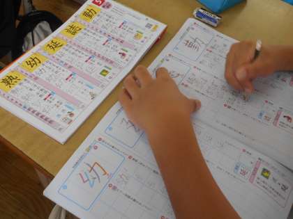 国語の授業です。「新出漢字」の練習をしています。