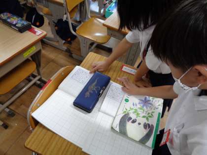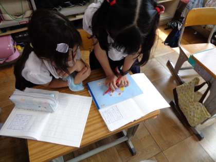 ひらがなをならべて問題をつくりました。お友達と問題を見せ合い、どんなことばが隠れているか考えました。お友達に新しいことばを見つけてもらった子もいました。いろんな発見があって楽しかったですね。
