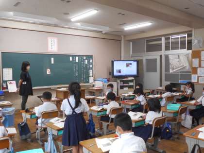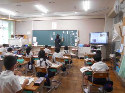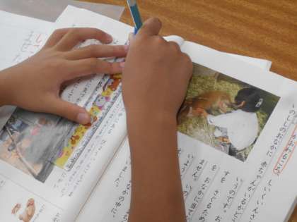 国語の授業です。大事なところに線を引いて,「どうぶつ園のじゅうい」を段落ごとにまとめています。