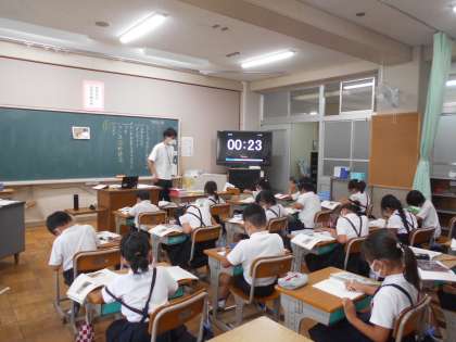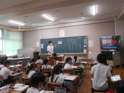 国語の授業です。「どうぶつ園のじゅうい」の3段落めをまとめています。