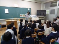 国語の授業です。「うみのかくれんぼ」の学習をもとに,「○○のかくれんぼずかん」をタブレットでつくっています。