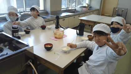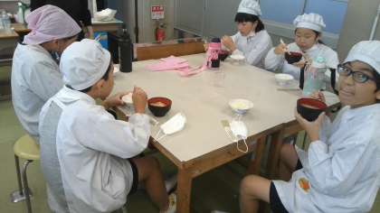 それでは食事タイムです。お味噌汁も,ごはんも自分たちでつくったものはどれもおいしいですね。普段はあまり食べることのない,「おこげ」もおいしかったみたいです。