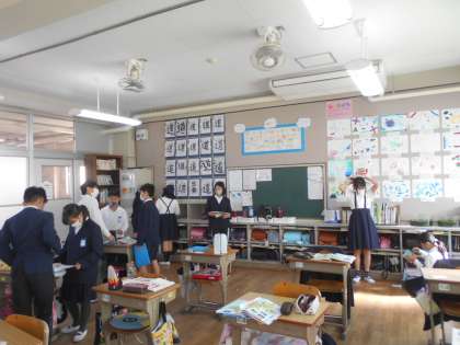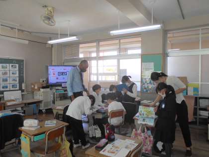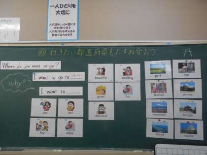 外国語の授業です。「行きたい都道府県」をたずね合っています。