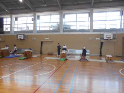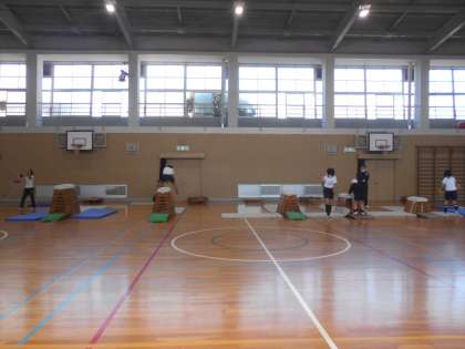 体育の授業です。「跳び箱」に取り組んでいます。