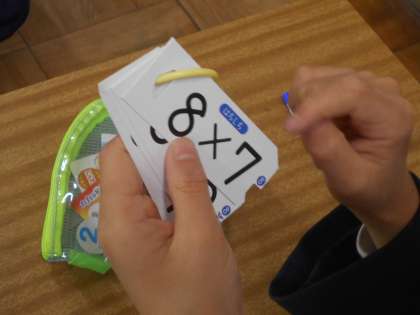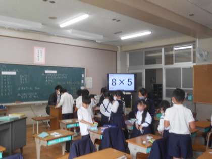 算数の授業です。「8のだん」の練習をしています。