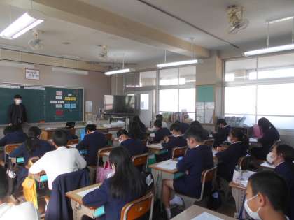 総合的な学習の時間です。「渋染一揆」をもとに,「人権」について学習しています。