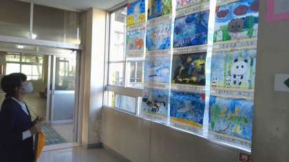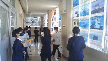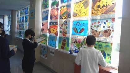 全学年の図工の作品の鑑賞をしました。自分の好きな作品を3つに絞って感想を書くのですが,良い作品ばかりで,どれにするか迷っています。