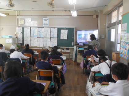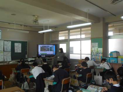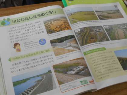 理科の授業です。「川とくらし」がどのように関わり合いがあるのか,学習しています。