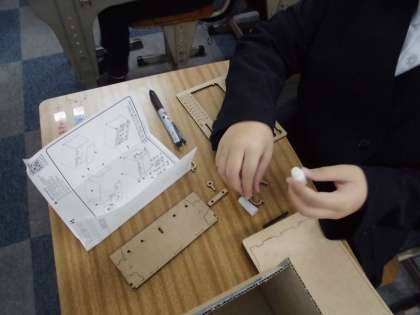 韓国の済州島の伝統工芸品である「クェ」という箱型の収納家具をモチーフにした小物入れ作りをしました。たくさんあるパーツを組み立てながら作っています。