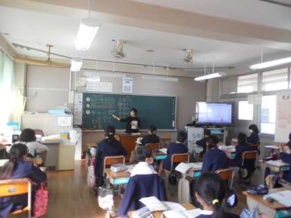 算数の授業です。「整数」を「分数」で表す方法を考えています。