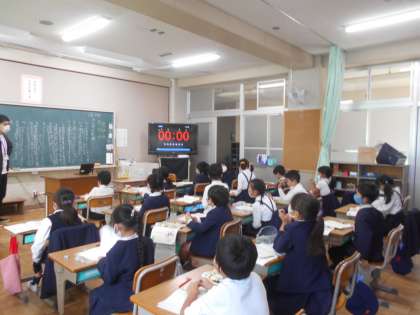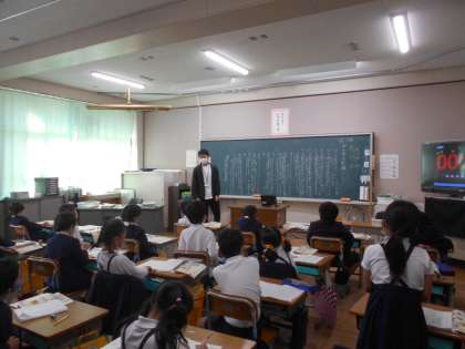 国語の授業です。漢数字を使って,算数の問題をつくっています。