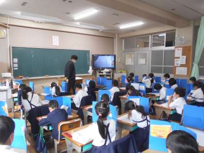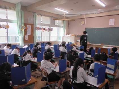 国語の授業です。先生の言った言葉を書き写す,「聞き取り」のテストをしています。