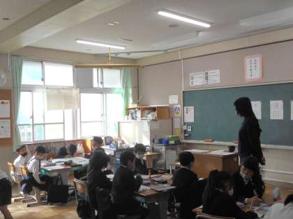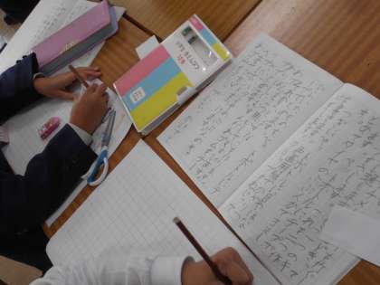 国語の授業です。「おもちゃ」の作り方の説明文を清書しています。